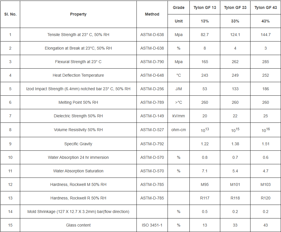 - Enhanced Mechanical Strength: Glass fiber reinforcement significantly improves tensile strength, stiffness, and impact resistance, making the material suitable for high-performance engineering components.